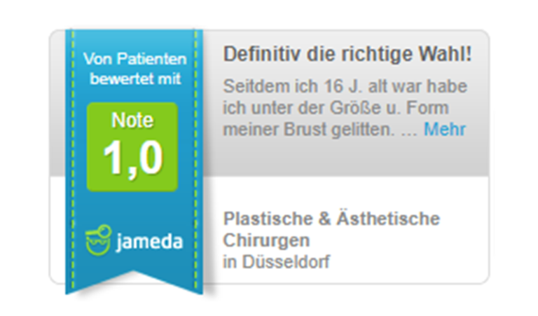 • Exzellente Patientenbewertungen: Über 623 Patientenbewertungen auf Jameda mit einem Durchschnitt von 5,0 Sternen (Bestnote). Patienten loben besonders seine herausragenden Ergebnisse und sein Einfühlungsvermögen.