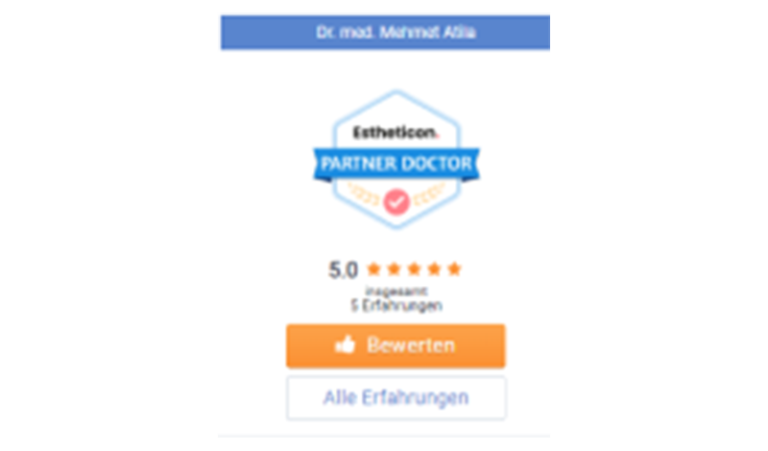 Auf dem bekannten Bewertungsportal Estheticon wird er als einer der beliebtesten plastischen und ästhetischen Chirurgen Deutschlands geführt – mit einer 100%igen Empfehlungsquote bei über 385 Bewertungen (Stand 2025). Patienten loben regelmäßig seine ausführliche Beratung, die Natürlichkeit der Ergebnisse, seine persönliche Betreuung sowie die erstklassige Nachsorge in der Medical Inn Klinik.